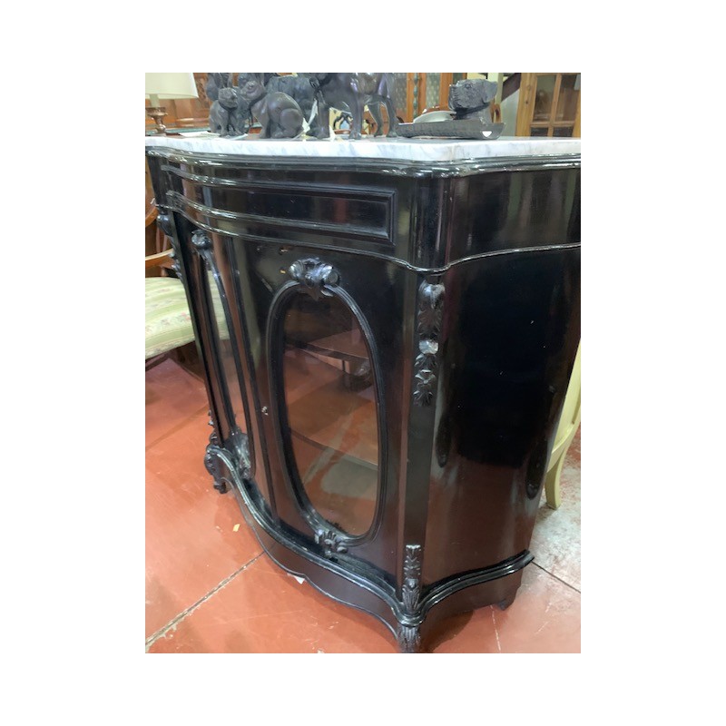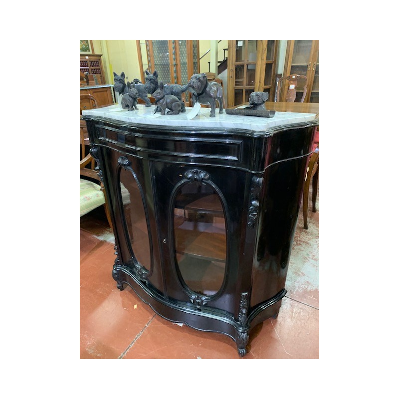 Mueble entredos antiguo color oscuro tapa marmol 2 puertas ovales 100x40x101