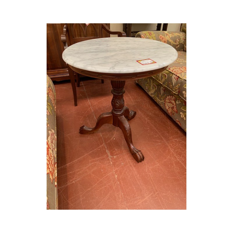Velador caoba pie central tapa marmol redonda 60x65
