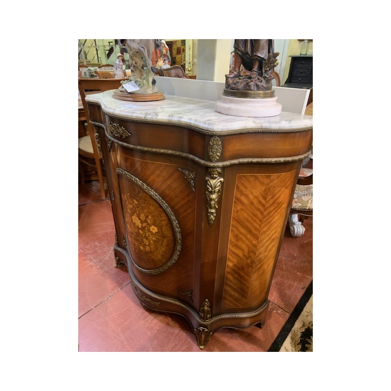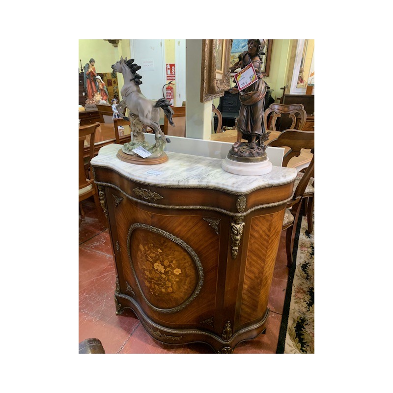 Mueble entredos 1/p con marqueteria y bronces tapa marmol 98x37x94