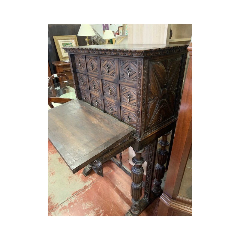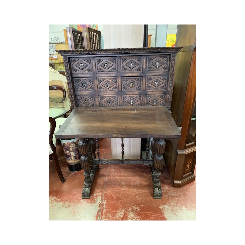 Bargueño antiguo est español con 12 cajones y consola baja 92x45x142
