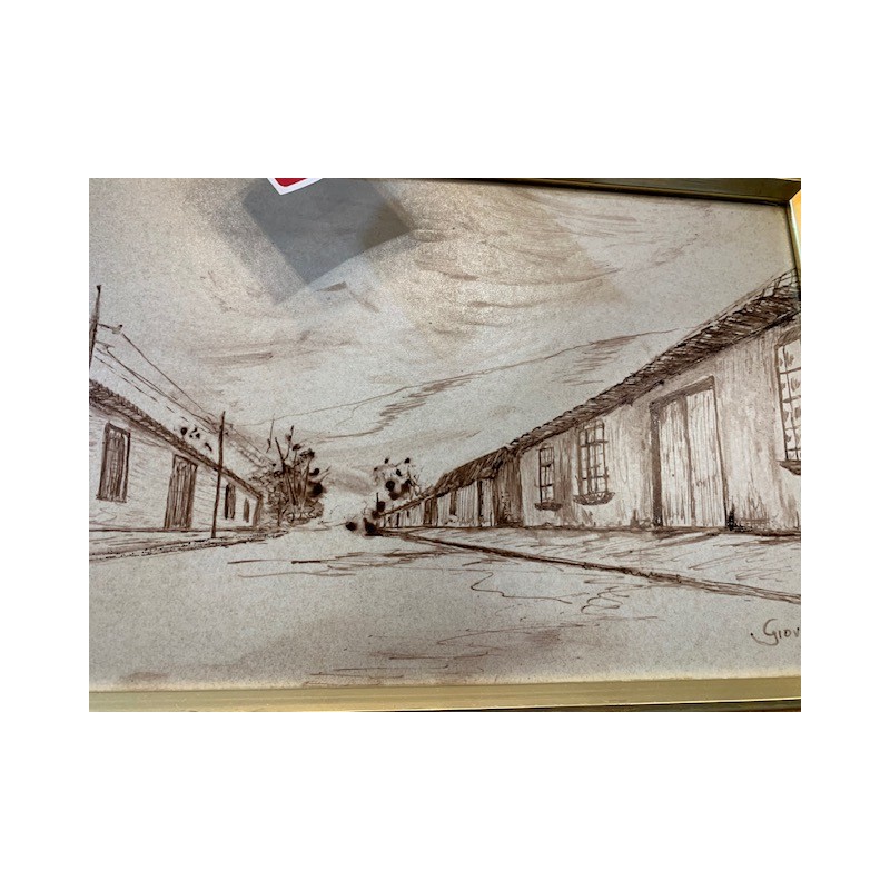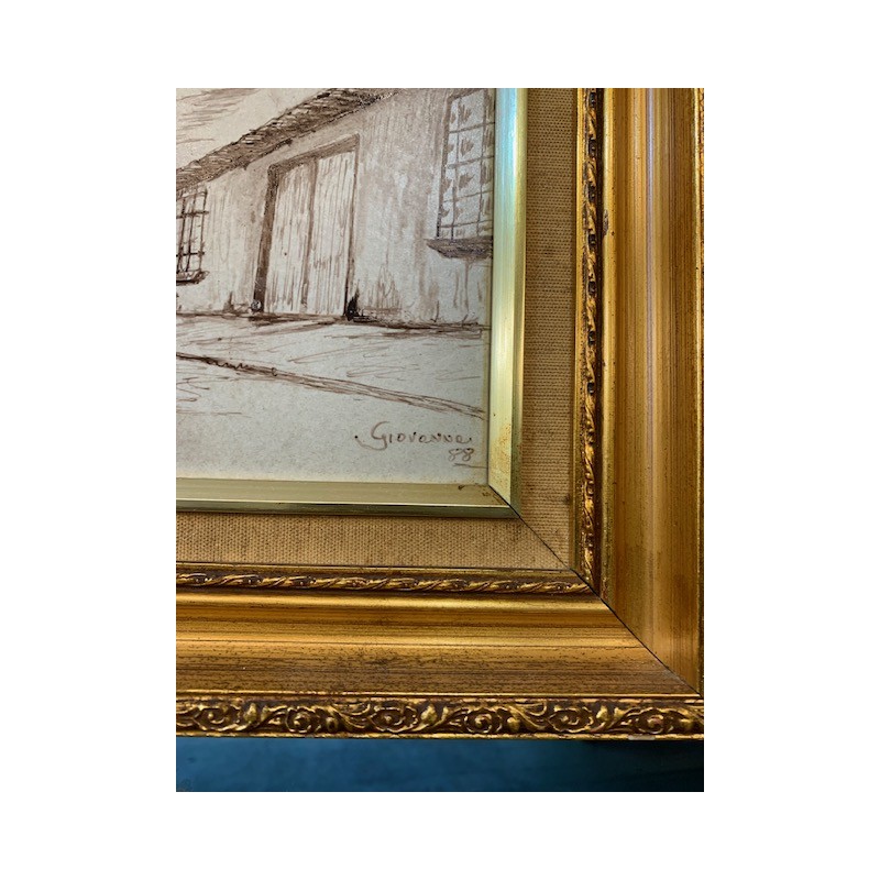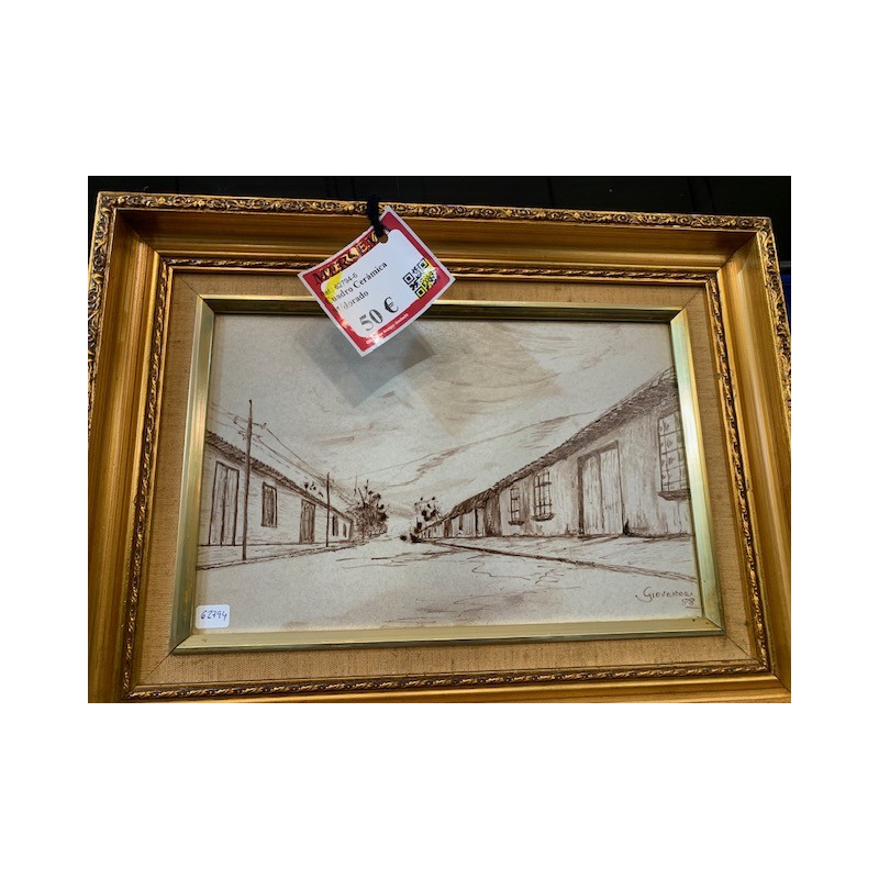 Cuadro pintura sobre ceramica marco dorado 43x34