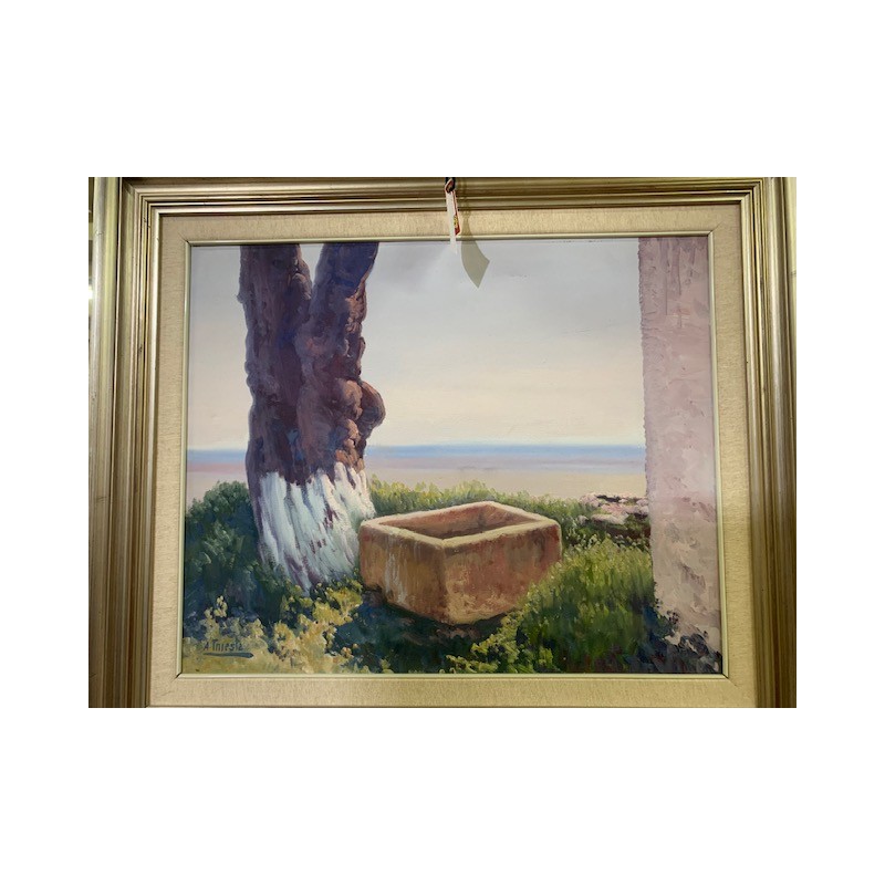 Oleo paisaje pilon en campo firmado A. Iniesta