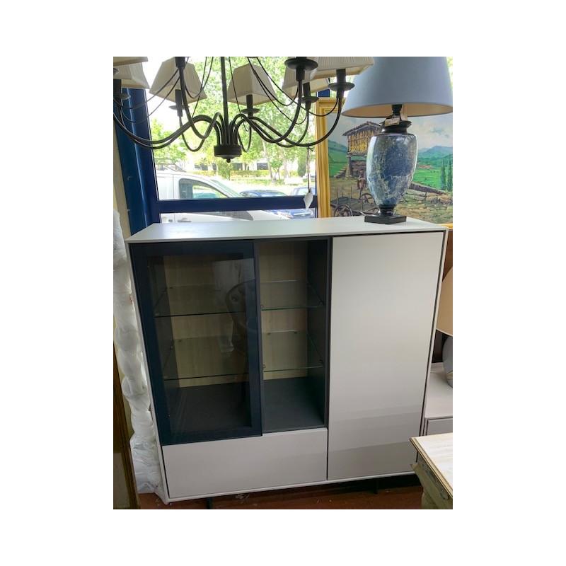 Modular 2 elementos moderno en color gris , vitrina y mueble bajo tv 280cm x46cm