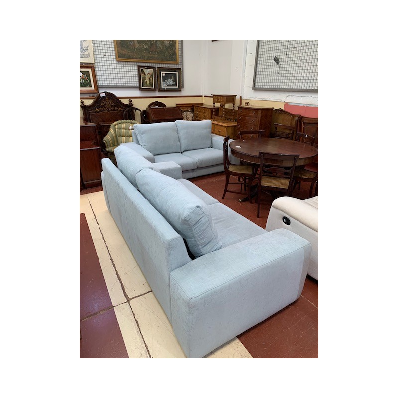 Sofas 3+2 brazo recto en tapizado alcantara azul agua