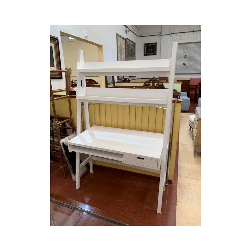 Estanteria decreciente con mesa estudio en blanco roto 120x60x185