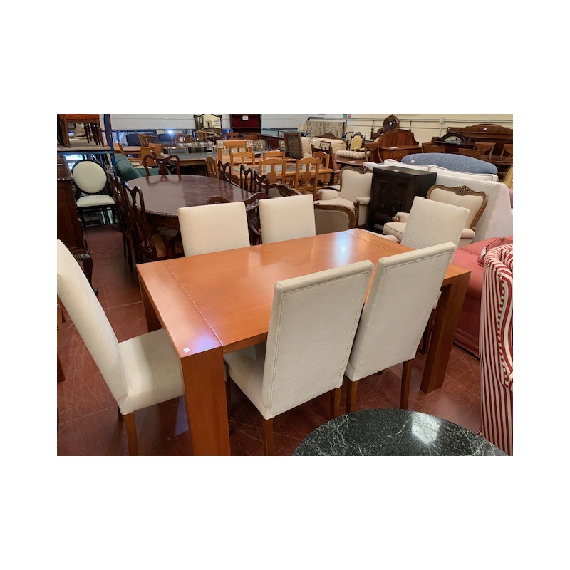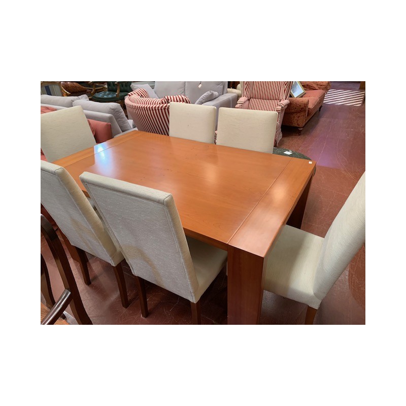 Mesa comedor cerezo ext con 6 sillas respaldo tapizado